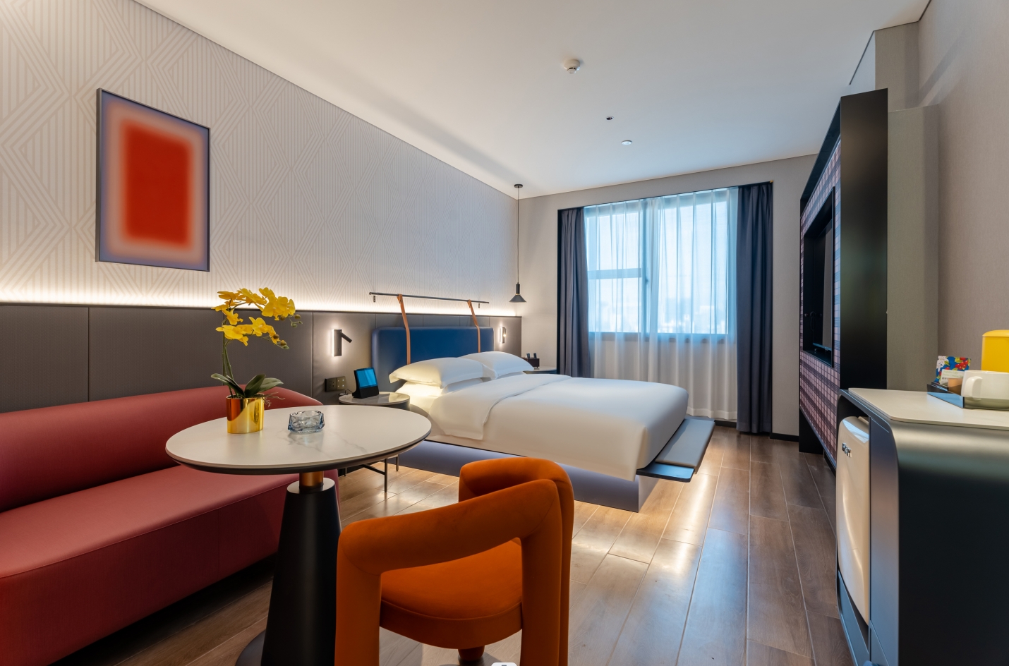 以“且漫,你的散漫與浪漫”為品牌核心理念,通過空間布局及裝飾設計的變化,軟裝家具的陳列,棉織品的觸感,療愈課程的引入,專屬小酒和在地美食的服務等等營造出“散漫與浪漫”的酒店氛圍。讓五感都能體驗舒適的“片刻人生”。